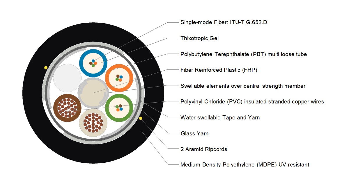 * Cablu optic 12 FIBRE SM + 2×2.5 mm2 Litat Cupru PLIN