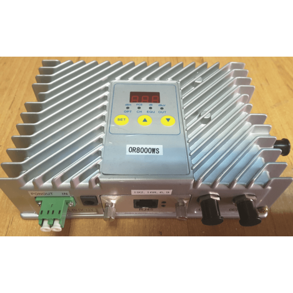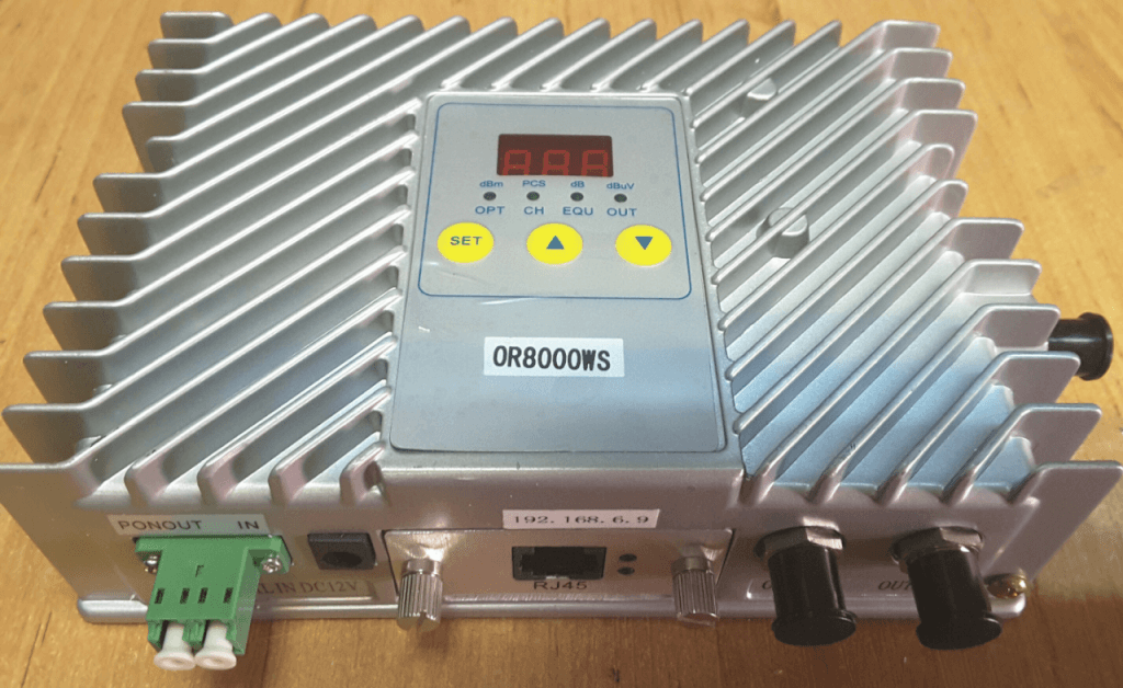 Intra fibra, iese fibra PON + 2 iesiri RF x 104 dB,